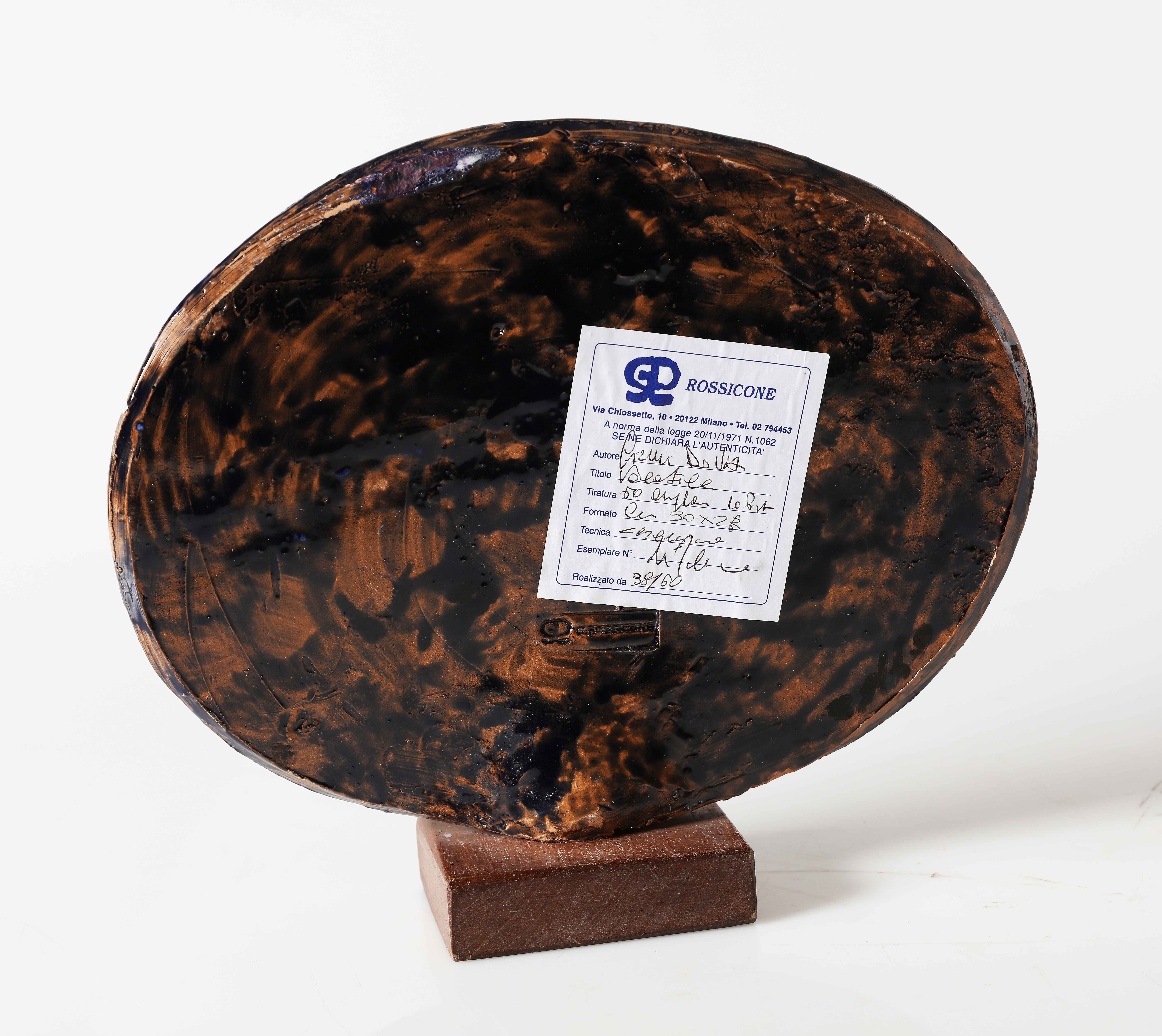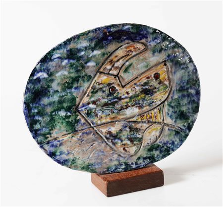 DOVA GIANNI (1925 - 1991) Volatile. Ceramica. Cm 23,00 x 30,00. 38/60. Al retro cartiglio descrittivo e di autenticità firmato dall'artista a cura della Galleria Rossicone, Milano.