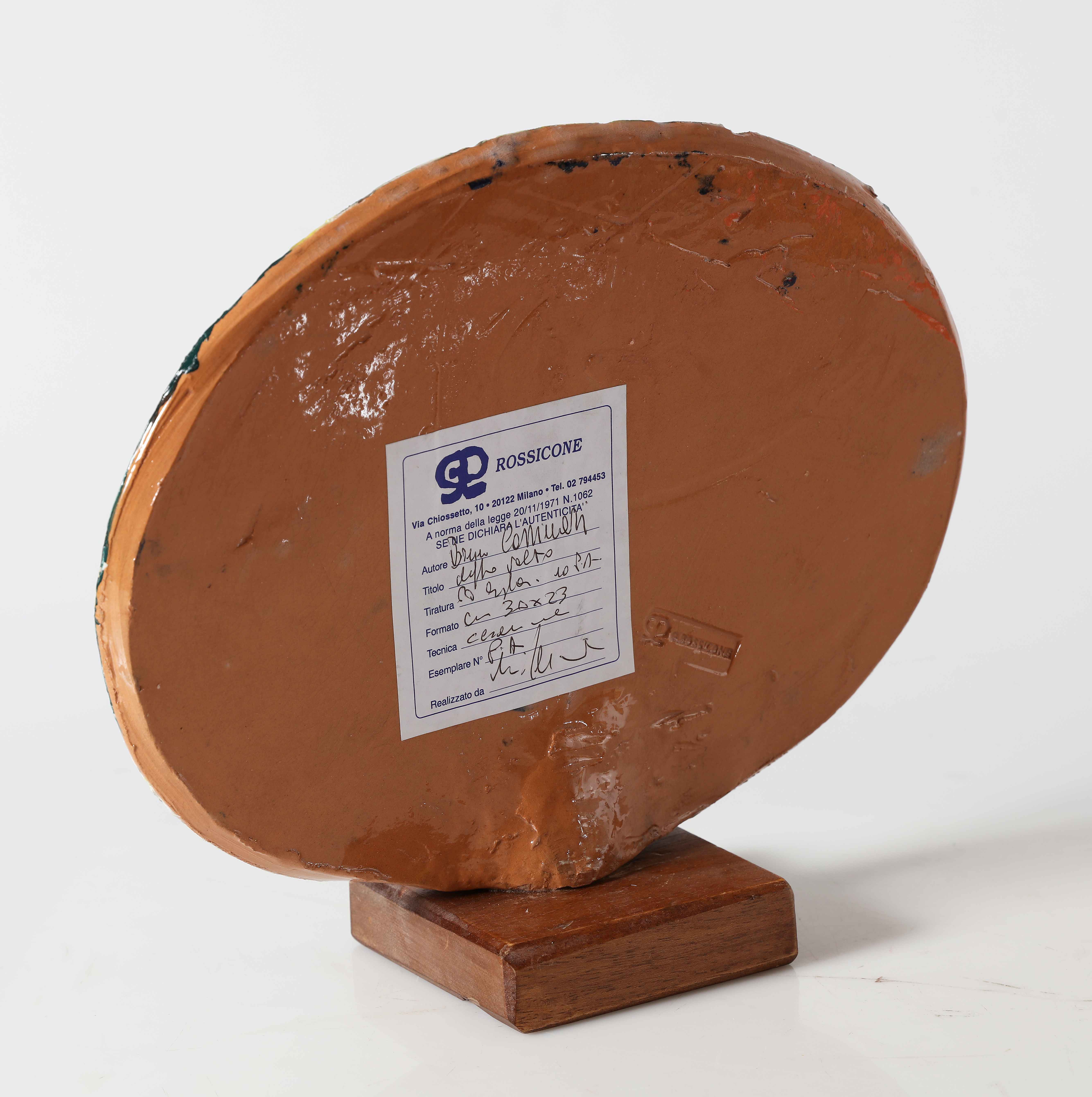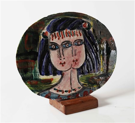 CASSINARI BRUNO (1912 - 1992) Doppio volto. Ceramica. Cm 23,00 x 30,00. P.d.a. Firma in basso a destra. Al retro cartiglio descrittivo e di autenticità firmato dall'artista a cura della Galleria Rossicone, Milano.