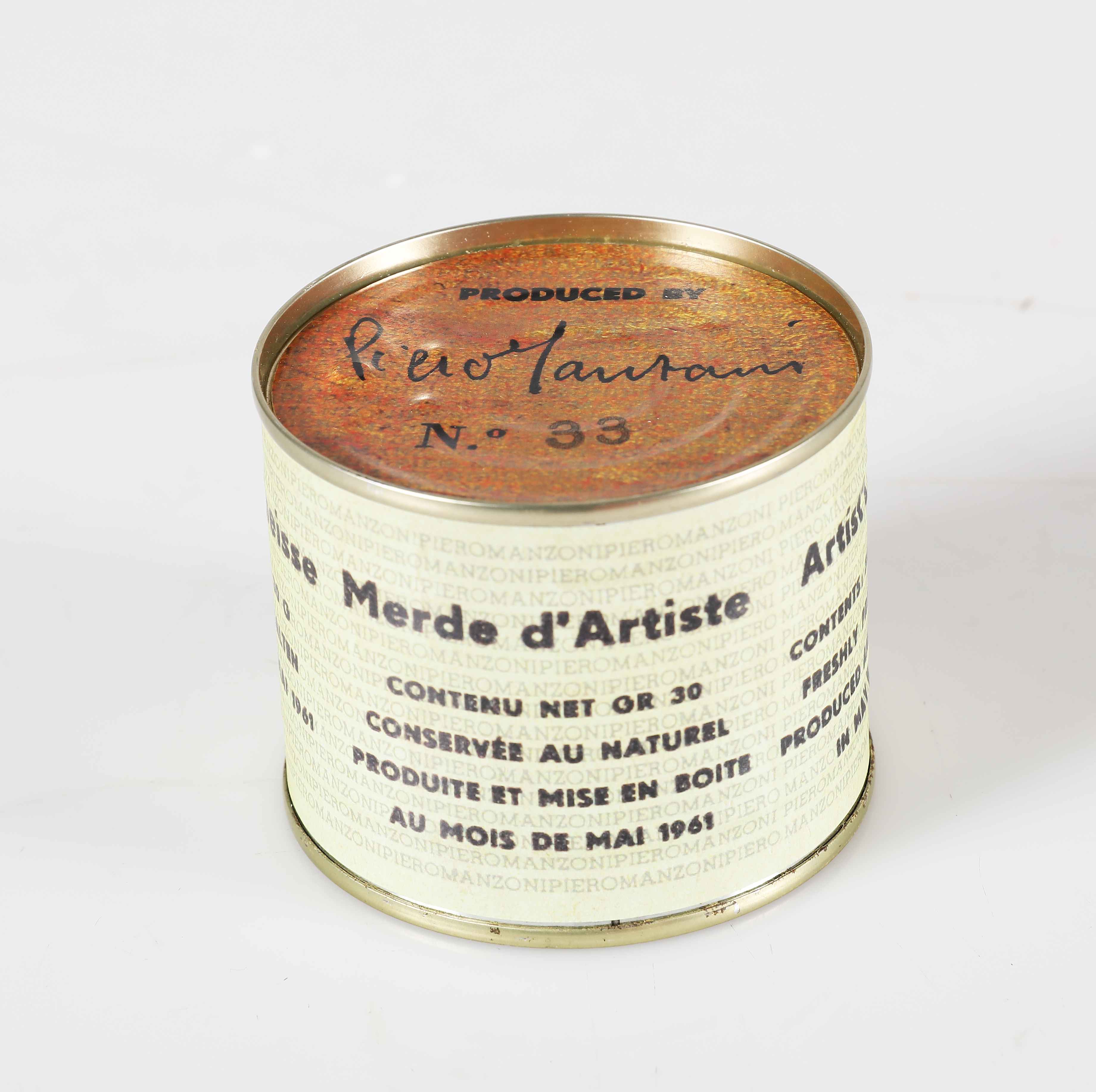 MANZONI PIERO (1963 - 2013) Merda d'artista. Latta. Cm 7,00 x 6,00. Firma a stampa. Edizione n. 33. Merda d'artista dell' anniversario 2013. Prodotta e inscatolata da: Fondazione Piero Manzoni, Milano.
