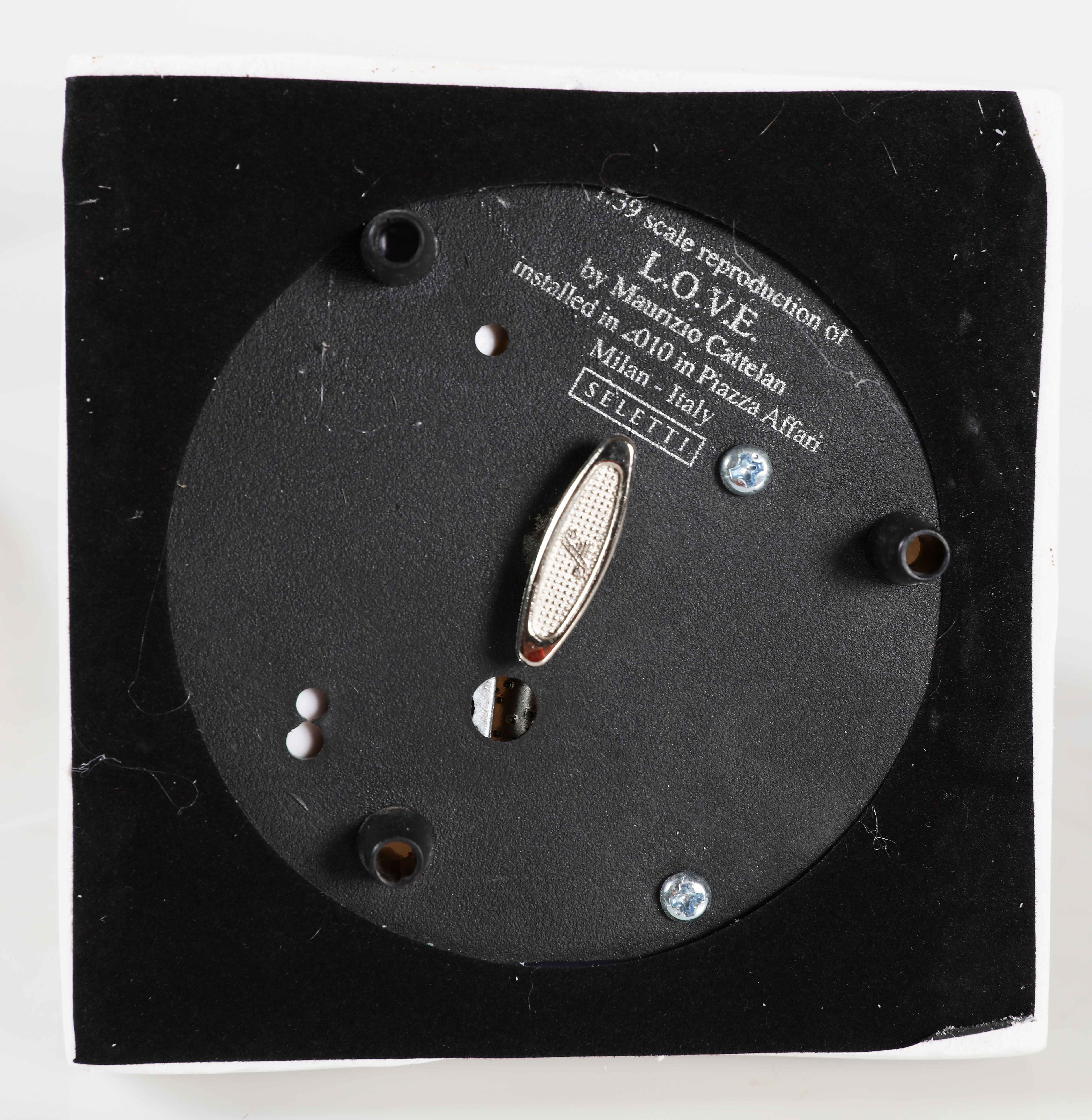CATTELAN MAURIZIO (n. 1960) L.O.V.E. Carillon. Resina. Cm 11,50 x 22,00 x 11,50. Multiplo. Riproduzione dell' opera monumentale di Maurizio Cattelan a Piazza Affari, Milano. Produzione Saletti. Opera contenuta nella scatola originale.i