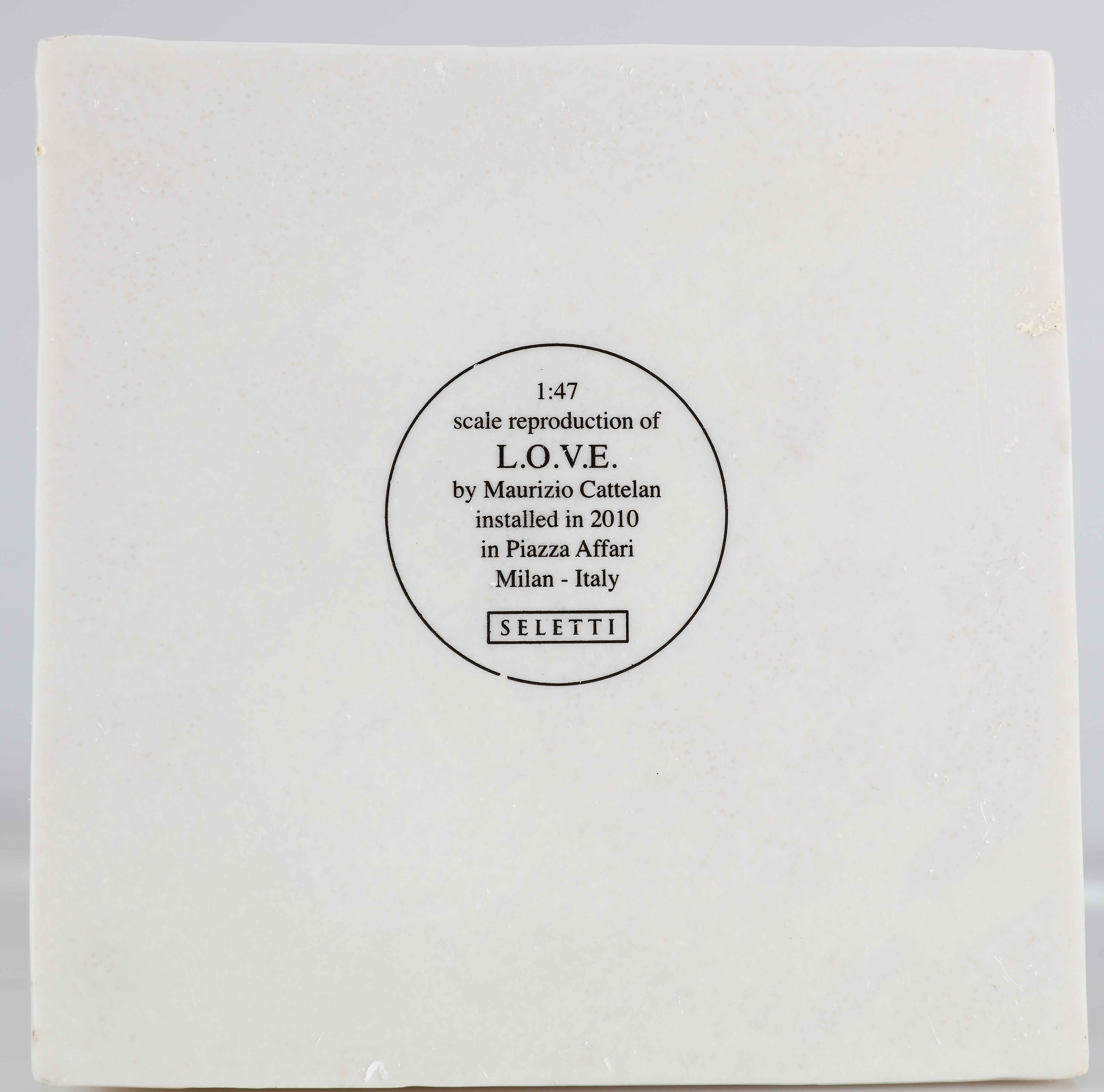 CATTELAN MAURIZIO (n. 1960) Snowball. L.O.V.E. Vetro e resina. Cm 11,50 x 17,00 x 11,50. Multiplo. Riproduzione dell' opera monumentale di Maurizio Cattelan a Piazza Affari, Milano. Produzione Seletti. Opera contenuta nella scatola originale.