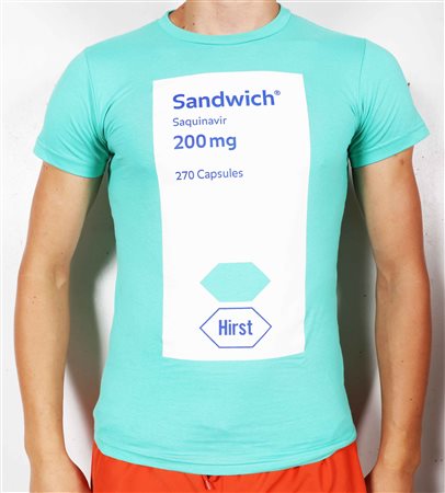 HIRST DAMIEN (n. 1965) The last supper Sandwich. Stampa su cotone. Cm 67,00 x 75,00. T-shirt donna taglia L. Titolo e firma a stampa all'interno.