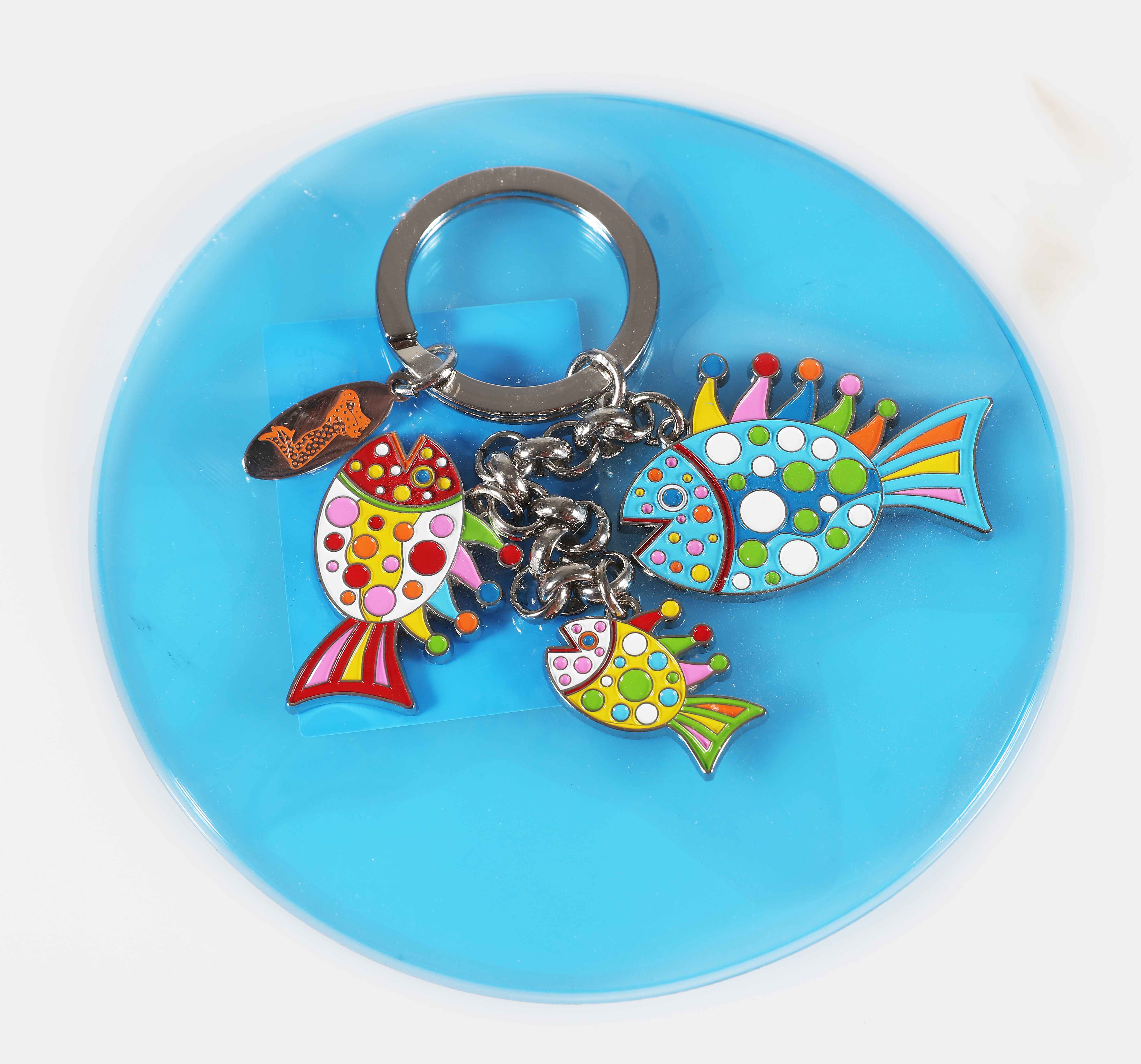 KUSAMA YAYOI (n. 1929) All the dreams within me fly away in the air. Acciaio. Cm 12,00. Marchio Husama Yayoi al retro di ogni pesce.