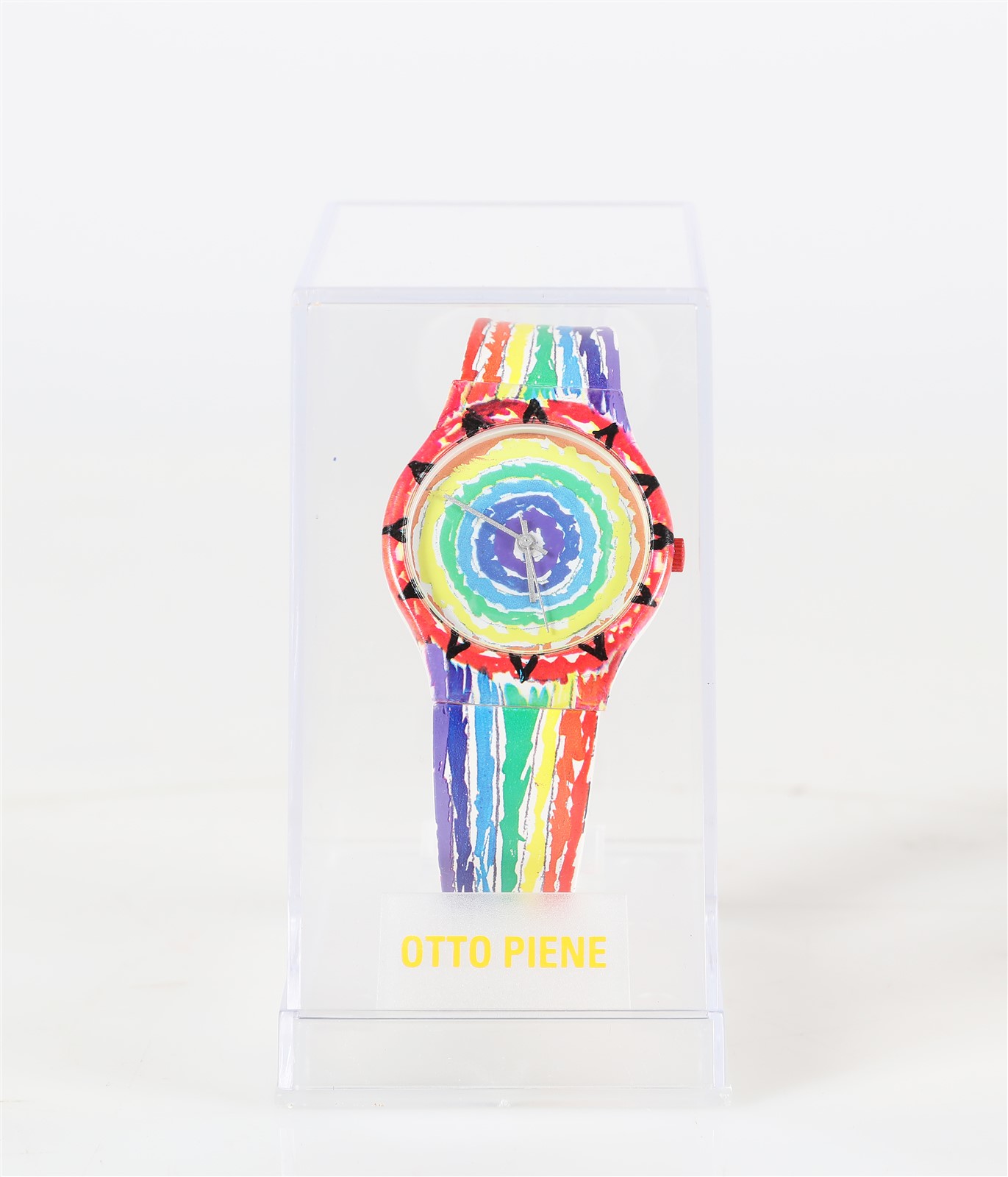 PIENE OTTO (1928 - 2014) Orologio. Plastica. Cm 3,00 x 23,50. Al retro firma a stampa. Contenuta nella confezione originale.
