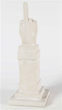CATTELAN MAURIZIO (n. 1960) L.O.V.E. Cemento. Cm 18,00 x 40,00 x 18,00. Riproduzione dell' opera monumetale di Maurizio Cattelan piazza affari. Prodotta da Seletti in 200 esemplari in occasione di Milano design week 2015. Scala 1:28. Cemento. Confezione originale in legno. Venduto in esclusiva dell'evento.
