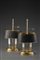 Coppia di lampade da tavolo a due luci in metallo dorato con paralume regolabile in altezza Pair of gilt-metal table lamps