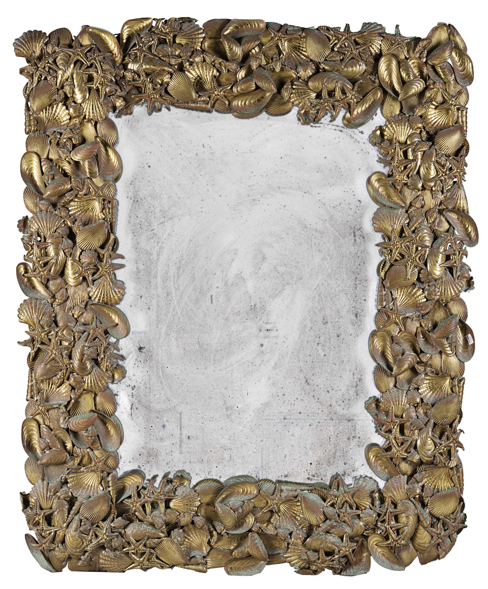 Specchio in metallo dorato,sbalzato e cesellato a conchiglie e stelle marine (cm 75x90) Gilt-metal mirror