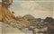 "La Gallinara vista da Alassio" olio su cartone (cm 32x47) Firmato e iscritto "Alassio" in basso a sinistra. In cornice (difetti) "Gallinaria as seen from Alassio" oil on cardboard. (defects)