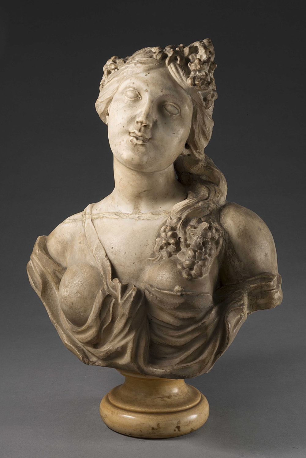 Arte del sec. XVII "Flora" busto in marmo scolpito su base circolare...