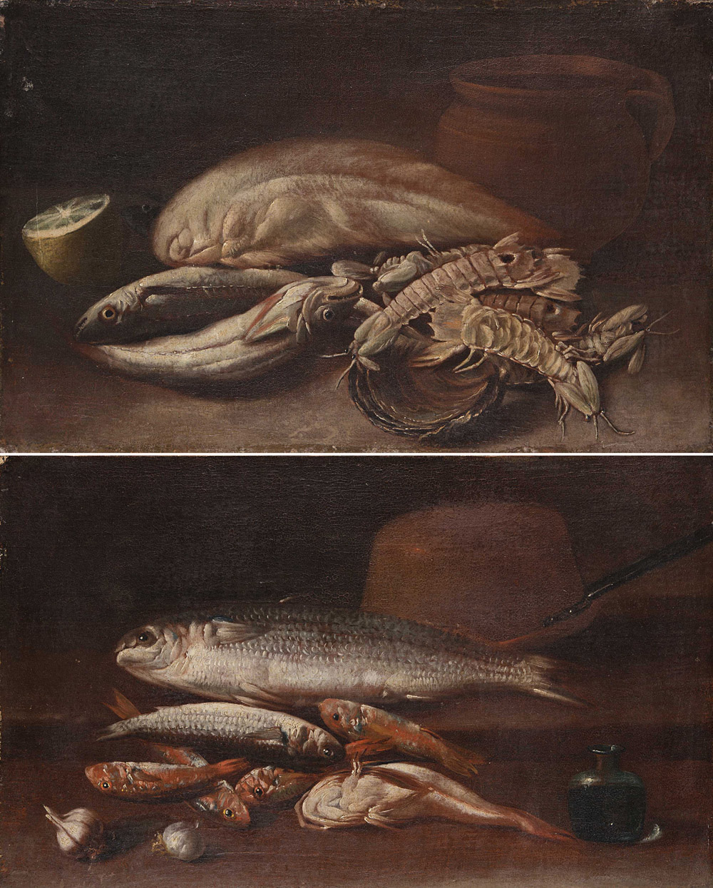 "Natura morta con pesci, canocchie, ostriche e limoni" "Cefalo, triglie,...