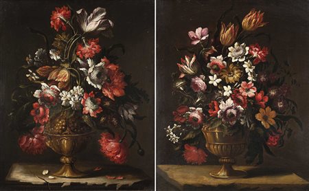 Maestro romano del sec XVII "Fiori" coppia di olii su tela (cm 68x56)...