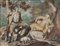 Scuola lombarda del secolo XVIII "Cacciatori" tempera su pergamena (cm...
