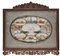 Maniatura indiana del sec. XIX su avorio centrata dalla veduta 'Taj Mahal' in un ovale circondato da altri otto ovali con architetture d'epoca Moghul intervallati da busti di Maharani e Maharaja probabilmente della famiglia Shah Jahan entro pannello intarsiato in metallo, avorio e pietre dure.Cornice in legno finemente intagliato sormontato da cimasa con cinque figure di divinità indiane, alla base volatili fantastici uniti da girali di foglie (cm 68x71) (difetti) per questo lotto è disponibile l'Attestato di Libera circolazione. 19th-century Indian miniature on ivory with central view of the Taj Mahal (defects) Export Licence is available for this lot.