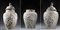 Gruppo di tre rari vasi con coperchio in gesso decorati in rilievo con...