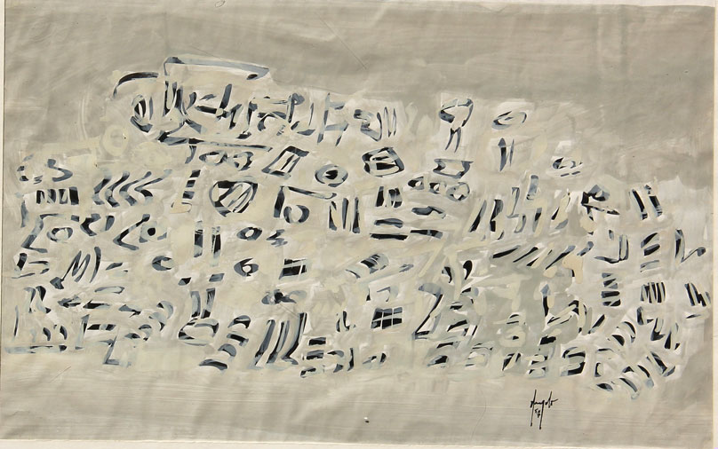 Sergio DANGELO Milano 1932 Senza titolo, 1957, tempera su cartoncino, cm. 19.5 x 31.5, Firma, data 'Dangelo, 57' (in basso a destra)