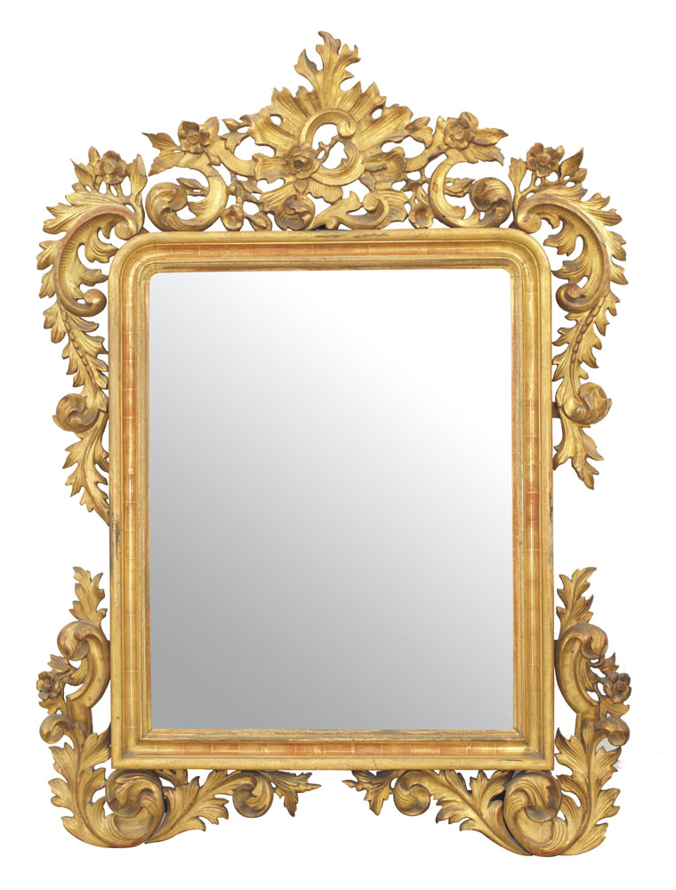 MOBILE DEL XIX SECOLO SPECCHIERA IN LEGNO SCOLPITO E DORATO, XIX SECOLO,...