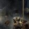 Gianfranco Ferroni Livorno 1927 - Bergamo 2001 Interno con tavolo e letto, 1959 Olio su tela, cm. 120,5x120 Firma e data in basso a sinistra: Ferroni 59; titolo e data al verso sulla tela: Interno con tavolo / e letto / Feb. 59: timbro Eunomia Galleria d'Arte, Milano; sul telaio: timbro ed etichetta con n. 70104 Eunomia Galleria d'Arte, Milano. Foto autenticata dall'artista.
