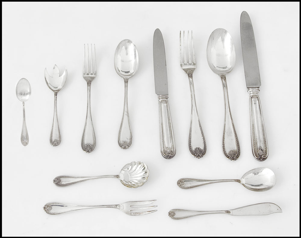 SERVIZIO DI POSATE IN ARGENTO, PALERMO, XX SECOLO, composto da sei forchette, coltelli e cucchiai, sei forchette, coltelli e cucchiai da dessert, sei cucchiaini, sei forchettine da dolce e quattro posate da portata. (tot. pz 52)