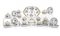 SEDICI CREMIERE CON COPERCHIO E PIATTO E UN VASSOIO IN PORCELLANA, HEREND, XX SECOLO, decori floreali policromi, uniti a UNA ZUCCHERIERA IN PORCELLANA, BAVARIA, XX SECOLO, di simile decoro; sbeccature.