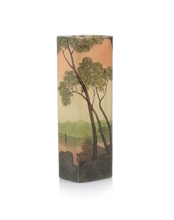 VASO IN VETRO DOPPIO DECORATO A SMALTI, LEGRAS, 1910 CA., decoro a paesaggio acquatico inciso ad acido e ripreso a smalti policromi, firma dipinta "Legras".