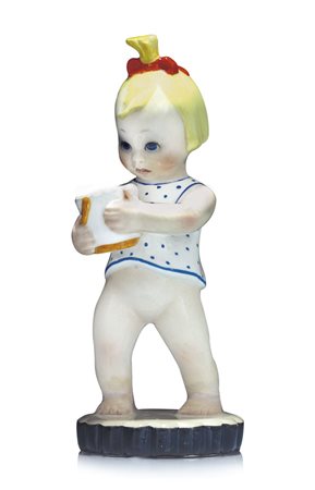 "BIMBA CON SECCHIELLO" IN CERAMICA, LENCI, 1935, decoro policromo; restauro ai piedi,