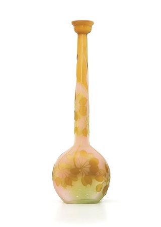 GALLE' VASO SOLIFLORE IN VETRO TRIPLO, GALLE', 1900 CA., base a bulbo, decoro...