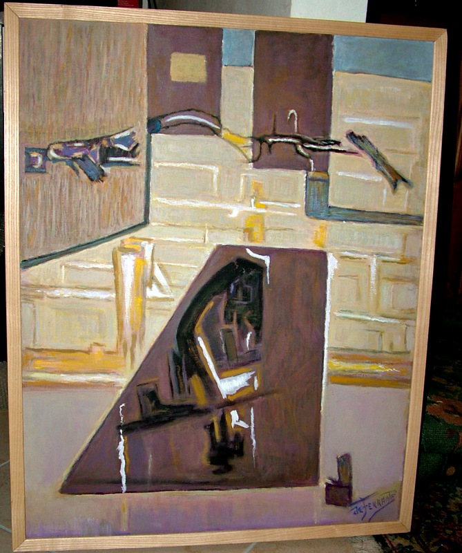 Francesco De Ferrante "Interno cubista" anni '70 olio su tela cm 56x72 Prov....
