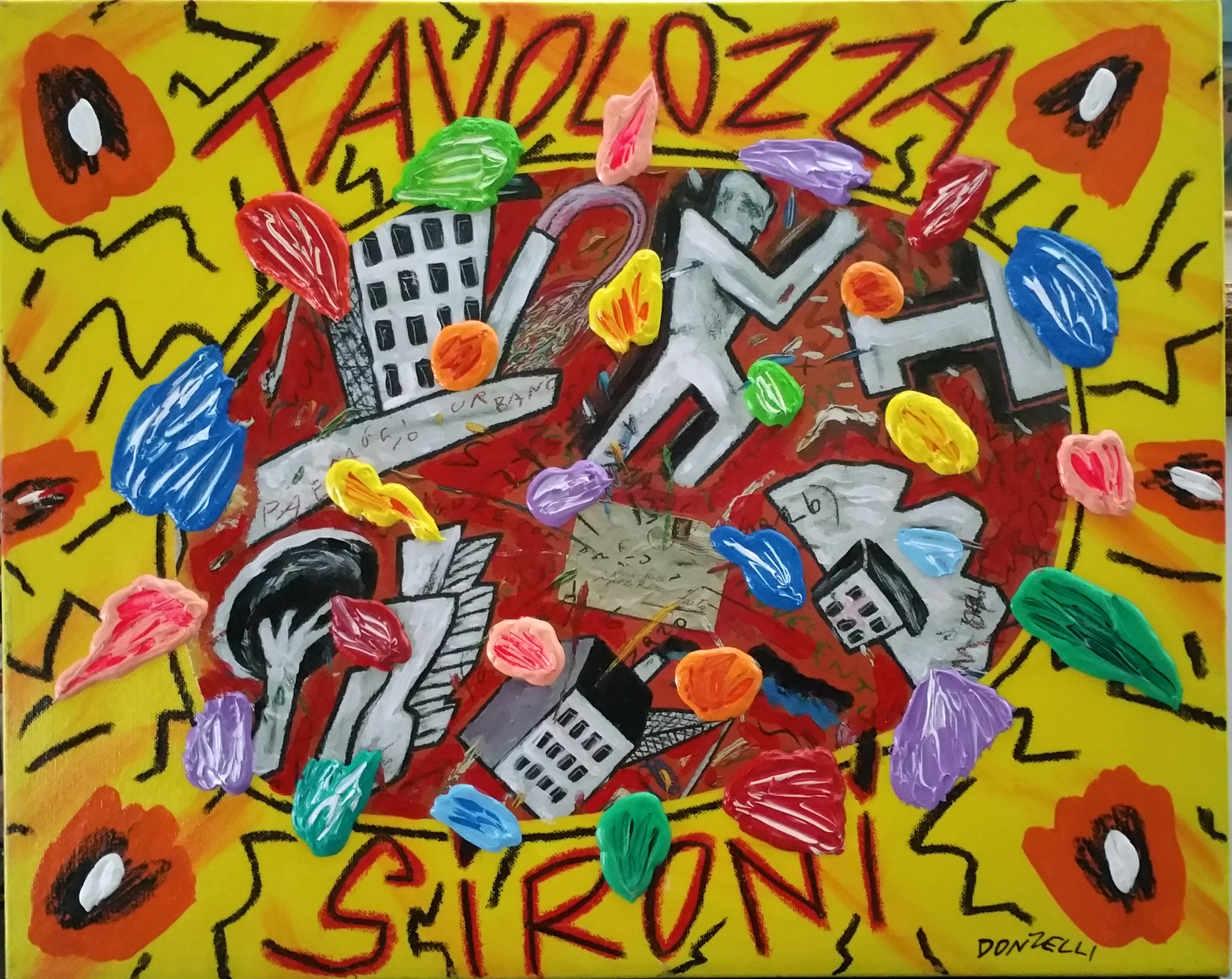 Bruno Donzelli, "tavolozza sironiana" olio e acrilici su tela cm...