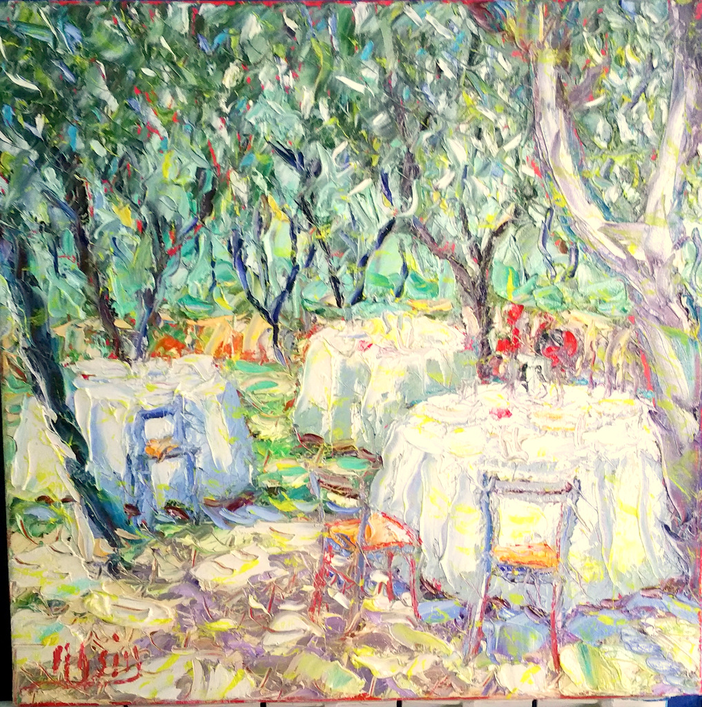 Roberto Masia "un giono di luce" olio su tela cm 40x40 .Autentica dell'Artista su foto