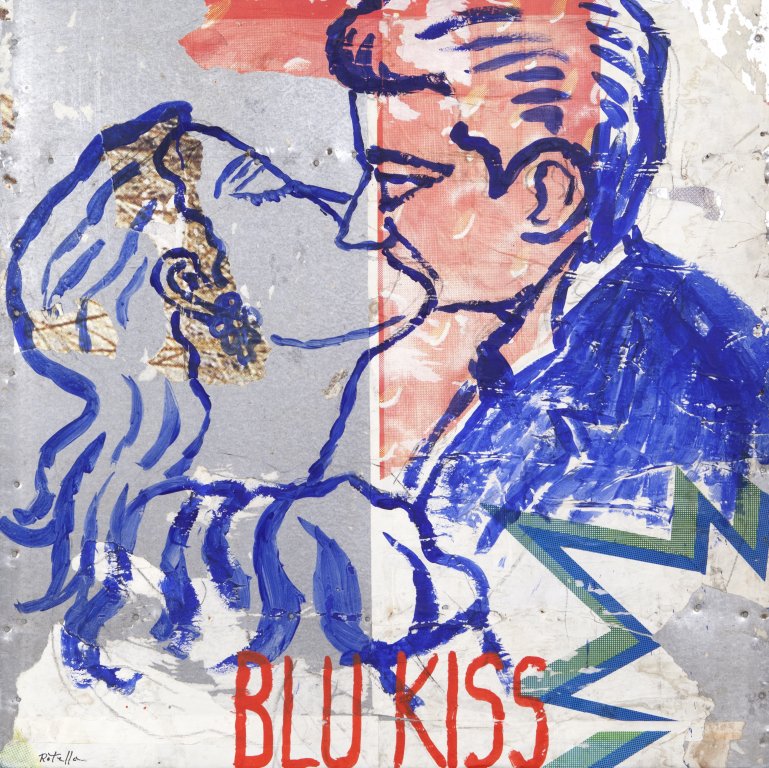 MIMMO ROTELLA (1918-2006) Blu Kiss 1994décollage su lamiera cm 100x100firmato...