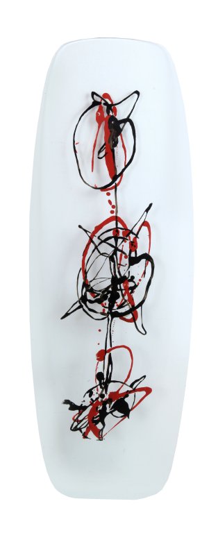 un tavolino con piano d'appoggio in vetro smaltato a fuoco cm 125x46 h cm 43