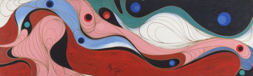 YONG PO (-) Senza titolo 1964olio su tela cm 46,5x153firmato e datato in...