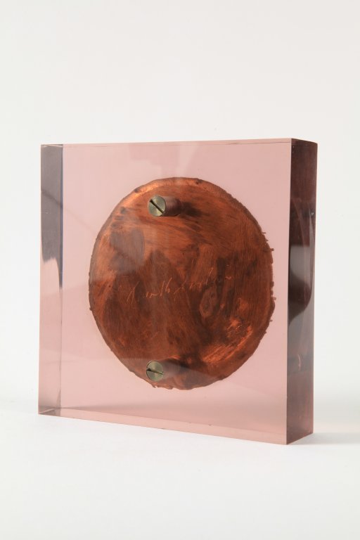 bronzo e plexiglass cm 14,5x14,5x3,5 (dimensioni totali)