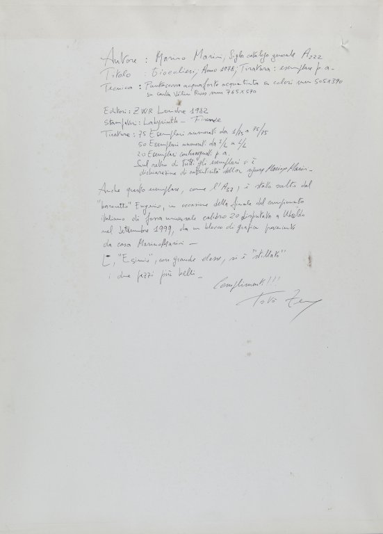 MARINO MARINI (1901-1980) Giocolieri 1978puntasecca acquaforte acquatinta a...