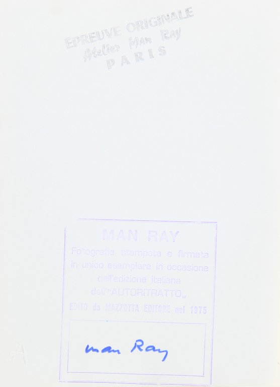 unique work realized on occasion for the Italian edition of the book Autoritratto Man Ray Mazzotta Editore in 1975