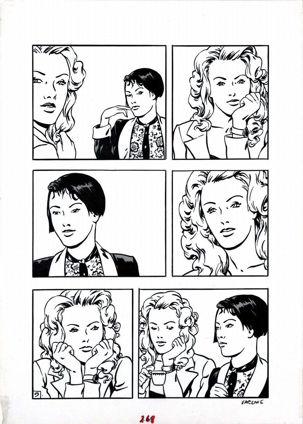 Matita china e retino su velina cm 29,6x42.Firmata in basso a destra. In eccellente stato, completata dalla velina con i balloons. Varenne è capace di raccontare con pochi tratti sguardi, sentimenti e pensieri.