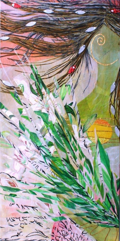 Edhèra. Stefania Semolini Isola della scala Verona 1 Donna di fiori Tecnica mista su tela 100x50