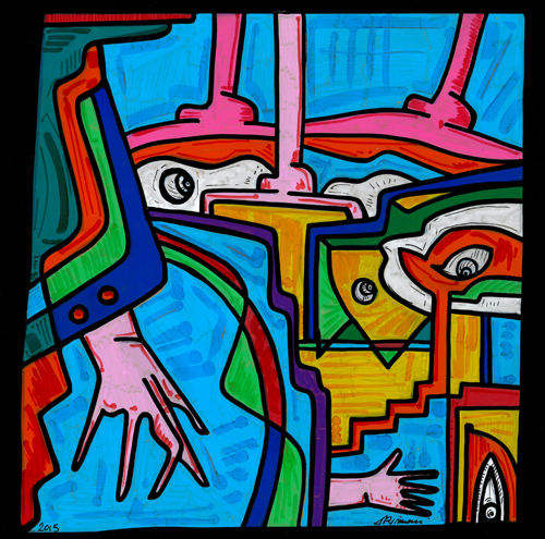 GIOVANNI TRIMANI ROMA 1974 PONTI 2015 ACRILICO SU LINEOLEUM 35x35 Certificato di autenticità