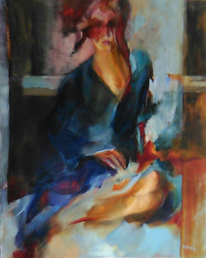 Antonella Campi Ceriano Laghetto 1954 Angela olio su tela 100x80 Certificato di autenticità