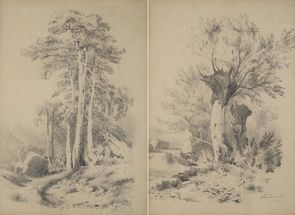 Leonardo Fea (Torino 1852 - 1903) - "Paesaggi" 1869 coppia di disegni a matita su carta (cm 19x27) Firmati e datati in basso a destra In cornici