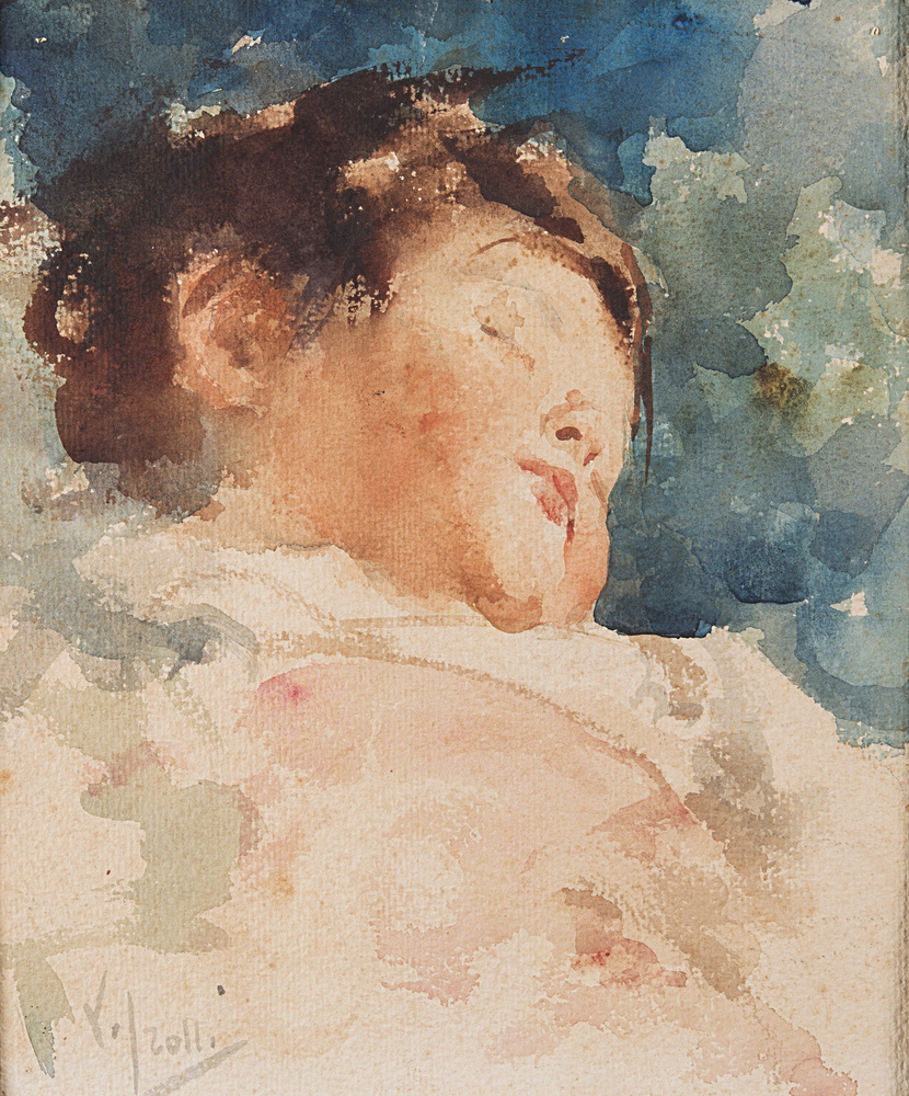 Vincenzo Irolli (Napoli 1860 - 1949) - "Bambino dormiente" acquerello su...