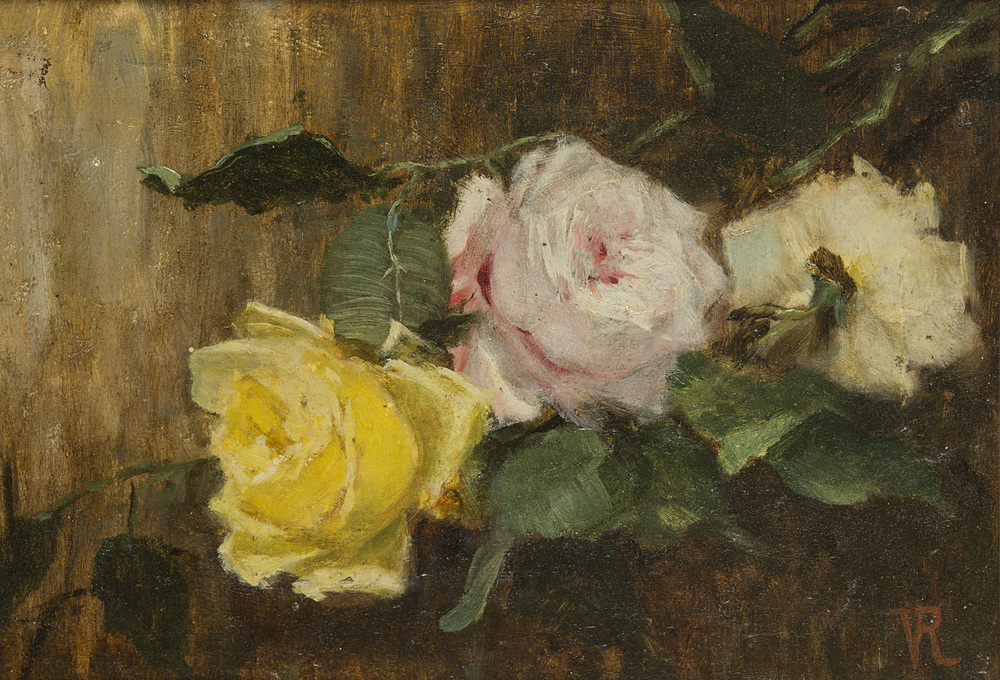 Virgilio Ripari (Asola 1843 - Milano 1902) - "Rose" olio su cartone (cm 28.5x43,5) Siglato in basso a destra In cornice