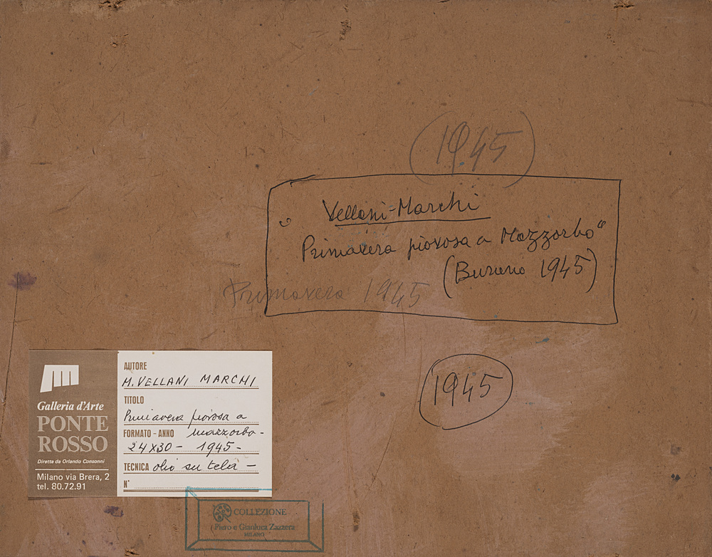 Mario Vellani Marchi (Modena 1895 - Milano 1979) - "Primavera piovosa a Mazzorbo (Burano)" 1945 olio su cartone (cm 24x30) Firmato e datato in basso a destra Al retro: titolato, datato ed iscritto; cartiglio Provenienza: Galleria d'Arte Ponte Rosso, Milano. Cartiglio al retro In cornice