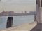 Cagnaccio Di San Pietro (Desenzano Del Garda 1897 - Venezia 1946) - "Controluce, Zattere" luglio 1935 olio su compensato (cm 21x28.5) Firmato e datato in basso a destra Al retro: titolato In cornice