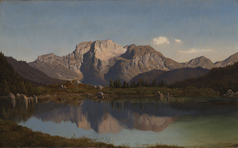 Carl Rottmann (Handschuhsheim 1797 - Monaco 1850) - (Attribuito) "Lago alpino" olio su tela applicata a cartone (cm 28.5x45) Al retro: iscritto, cartiglio Provenienza: Decor Antichità di Laura Coridori, Milano. Cartiglio al retro Allegato certificato di autenticità della Decor Antichità rilasciato il 13.12.2006 In cornice