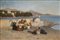 Maestro del XIX secolo "Merlettaie al tombolo sulla spiaggia" 1851 olio su tela (cm 62x92) Reca firma V.Cabainca e data in basso a sinistra In cornice