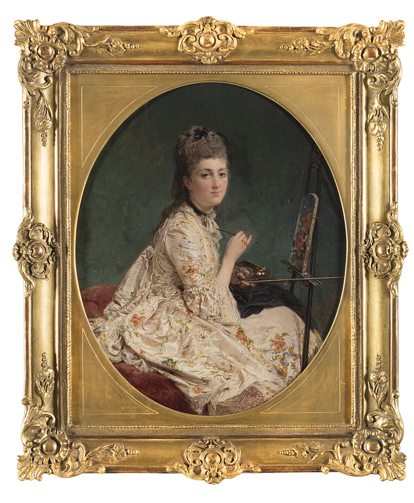 Gerolamo Induno (Milano 1825 - 1890) - "La pittrice" 1873 olio su tela ovale (cm 52.5x42) Firmato e datato in basso a destra Provenienza: Gherardo Celestini, Milano; Giuliano Matteucci, Viareggio Bibliografia: "Catalogo Bolaffi della Pittura Italiana dell'Ottocento" n.7, Torino 1978, opera citata e riprodotta pag.181; "Tesori dal tempo". catalogo Ufficiale Biennale Antiquaria 2003" Verona 2003, pag.130 In cornice