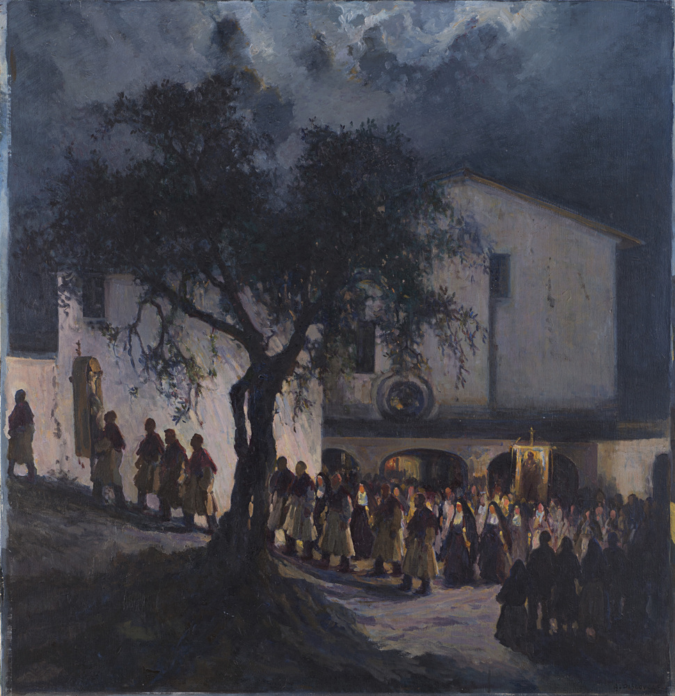 Antonio Discovolo (Bologna 1874 - Bonassola 1956) - "Processione in...