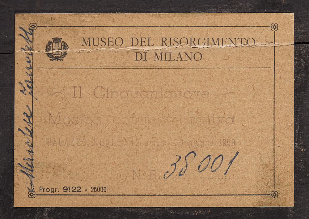 Vincenzo Giacomelli (Grizzo 1814 - Venezia 1890) - "Vittorio Emanuele II e Napoeone III sul C.so Vittorio Emanuele" 1861 olio su tavola (cm 80x118) Firmato e datato in basso a destra Al retro: cartiglio Esposizione: 1959, Milano, Palazzo Reale "Il Cinquantanove, dal convegno di Plombières all'armistizio di Villafranca: mostra commemorativa" n.38001. Cartiglio al retro Bibliografia: E.Sioli Legnani "Poesia di Milano" Milano 1940, opera citata e riprodotta a colori a pag.291 tav.141 (Difetti)
