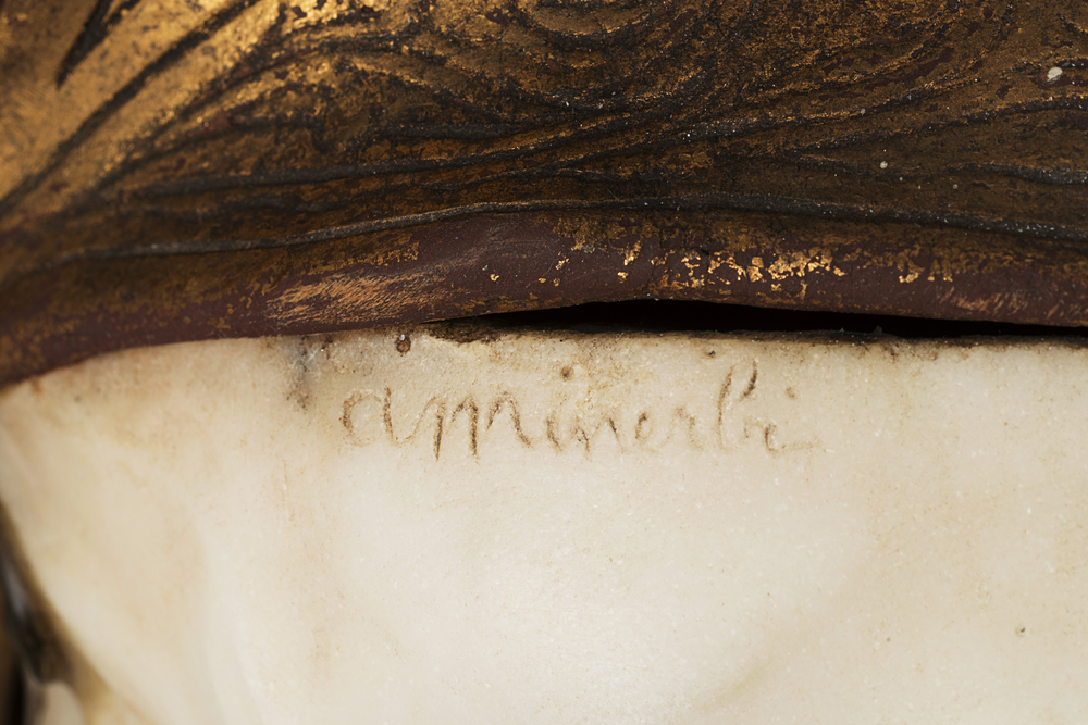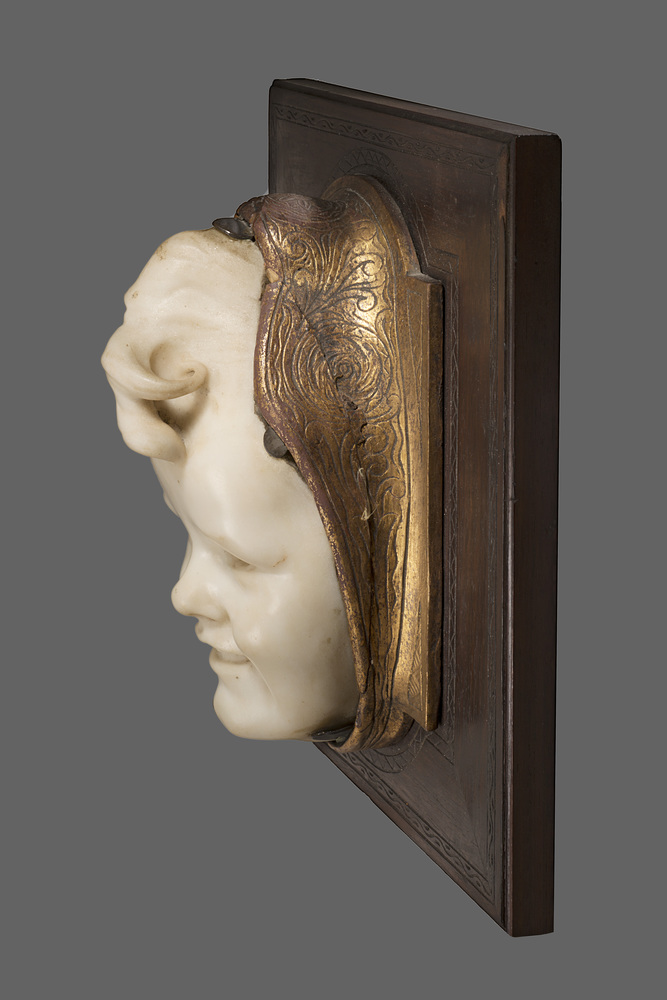 Arrigo Minerbi (Ferrara 1881 - Padova 1960) - "Paola" scultura in marmo (cm 21x14) montata su cornice di legno con profili intagliati Firmata in alto a sinistra (Difetti) cfr. Arrigo Minerbi "Arrigo Minerbi. Pensieri, confessioni e ricordi" Milano (1953) Casa Editrice Ceschina. Tav.XV e XVI